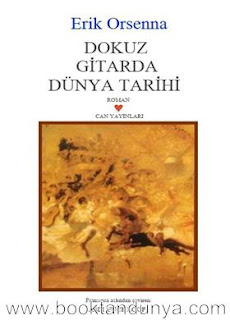 Dokuz Gitarda Dünya Tarihi’nin Jimi Hendrix’i konu alan bölümünden alınmış bir parça bu. Jimi Hendrix’i olduğu kadar, gitarla bin yıllardır ilgili olan pek çok kişiden, gitara yurt olan pek çok yerden de söz edïyor bu eğlenceli kitap. Fransız yazarı Erik Orsenna, bu küçük kitapta, gitarın bin yıllar içindeki evriminden yola çıkarak insanlık tarihine yeni bir bakış açısından bakıyor. Afrika’nın unutulmuş bir köşesinde ilk insanın izini süren bir arkeologun bulduklarından başlayıp tarih içinde gitarın ve taşıdığı anlamların peşine düşüyor. İsa’dan önce 2500 yılında Mısır’ın Kheops’undan, 16’ncı yüzyılın Peru’sundan ve İspanya’sından geçirip 19’uncu yüzyılın Mississippi’sine götürüyor. 1969 yılındaki ünlü Woodstock müzik şölenine taşıyor, Jïmi Hendrix’le buluştunıyor bizi, Eric Clapton’ın ezgilerine kulak verdirtiyor. Dünya tarihine değişik bir açıdan bakmak isteyenler için renkli bir tablo çiziyor.
